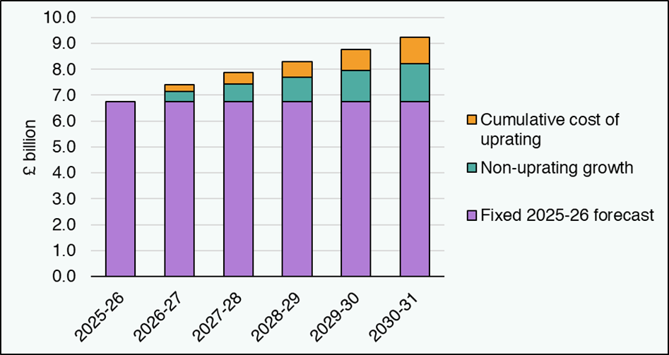 Increases in payment rates in 2026-27 account for £0.25 billion of social security spending in 2026-27, increasing to £1 billion in 2030-31