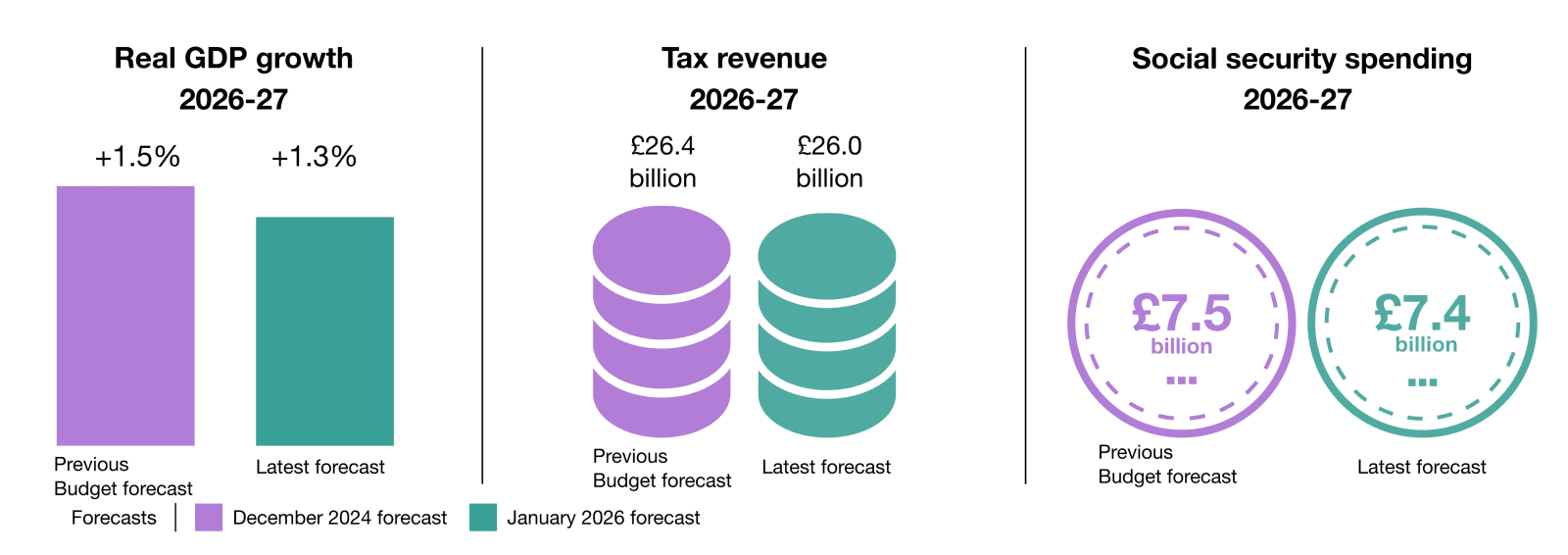 Our report, Scotland’s Economic and Fiscal Forecasts – January 2026, was published on 13 January 2026 setting out our five-year forecasts of the Scottish economy, tax receipts, social security expenditure and an overview of the Scottish Government’s overall fiscal position.